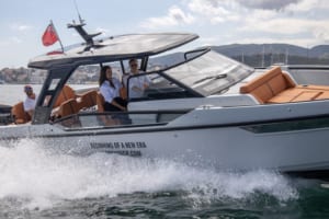 Alcanzando velocidades de hasta 50 nudos, el Saxdor 320 GTO parecía navegar sin esfuerzo. Su llamativa tapicería naranja contrasta a la perfección con el casco blanco brillante y el techo gris, una combinación de colores y texturas muy moderna. Muchas de las características de serie a bordo de esta embarcación son comparables a las de barcos más grandes, con una zona flexible para socializar y entretenerse con bar y respaldo deslizante, además de terrazas laterales que se abren hacia popa. La versatilidad de esta embarcación garantiza que puede adaptarse a cualquier grupo de personas, independientemente de dónde deseen pasar el tiempo: con alojamiento en litera doble en la parte inferior para que dos personas pernocten, los fines de semana largos son fáciles. ¿Y qué mejor manera de pasar un fin de semana que dando vueltas por las Baleares?