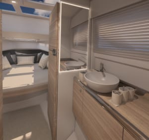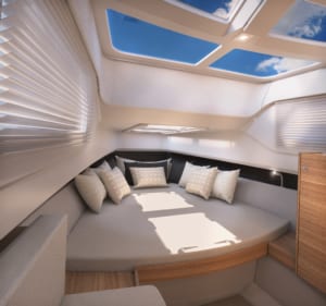 A bordo, disfruta de un montón de asientos espaciosos y flexibles. En proa, hay un gran solárium, mientras que en popa hay asientos flexibles para los invitados, ya sea uno frente al otro o mirando hacia popa para disfrutar de las vistas. Esta ingeniosa zona de asientos también puede transformarse en un gran solárium, con laterales del casco que bajan hasta el agua para crear una plataforma desde la que disfrutar del agua. Practicar deportes acuáticos, nadar o simplemente disfrutar del agua es fácil en este barco. Impresionantemente, debajo de la cubierta, hay incluso alojamiento espacioso para que dos invitados pasen la noche si lo desea. Este alojamiento inferior cuenta con una claraboya, ventanas laterales, sala de estar y baño privado.